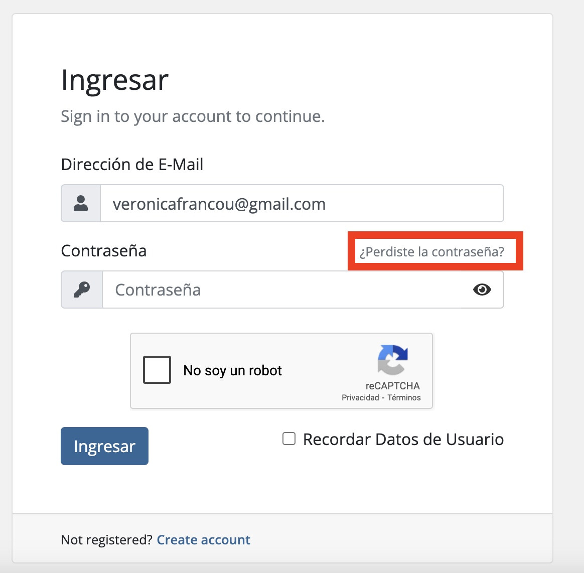 - Marcá la casilla “No soy un robot” y hacé clic en “Ingresar”.